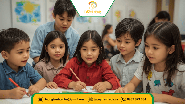 Thông qua hoạt động nhóm, trẻ học cách chia sẻ, hợp tác và thể hiện cảm xúc một cách phù hợp. Việc này không chỉ giúp trẻ hòa nhập dễ dàng hơn tại trường học phổ thông, mà còn chuẩn bị hành trang để hòa nhập cộng đồng sau này.